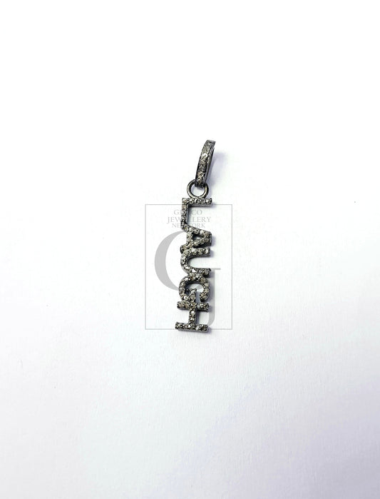 Very Beautiful LAUGH Word Designer Rosecut Pave Diamond Pendant 925 Sterling Silver Handmade Finish Diamond Jewelry Pendant