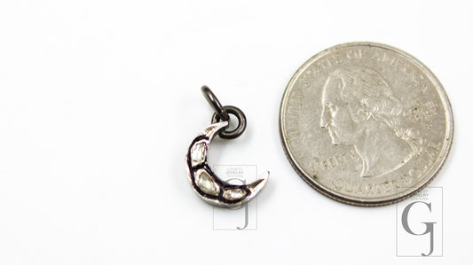 Very beautiful slice diamond moon designer Rosecut pave diamond pendant 925 sterling silver handmade finish diamond charms necklace pendant