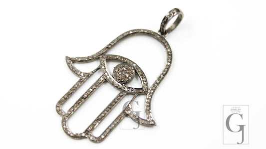Antique Hamsa Evil Eye Pendant Designer Rosecut Pave Diamond Pendant 925 Sterling Silver Handmade Finish Diamond Charms Necklace Pendant