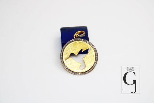 King Fisher 14k Gold Bird Pendant Designer Rosecut Pave Diamond Pendant 925 Sterling Silver Handmade Finish Diamond Charms Necklace Pendant