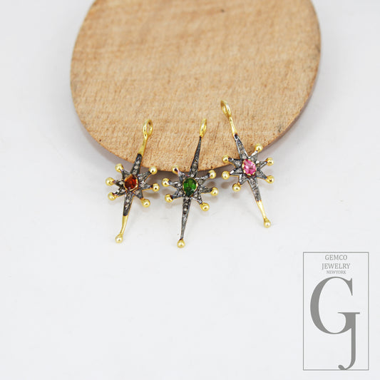 Star design Rosecut pave diamond pendant 925 sterling silver handmade finish beautiful diamond pendant jewelry
