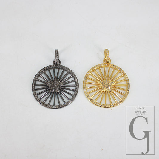 Starburst pendant designer Rosecut pave diamond pendant sterling 925 silver handmade finish diamond charms necklace pendant