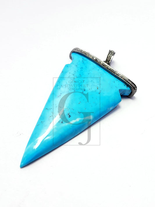 Rosecut pave diamond pendant 925 sterling silver handmade turquoise arrowhead design diamond pendant jewelry turquoise stone