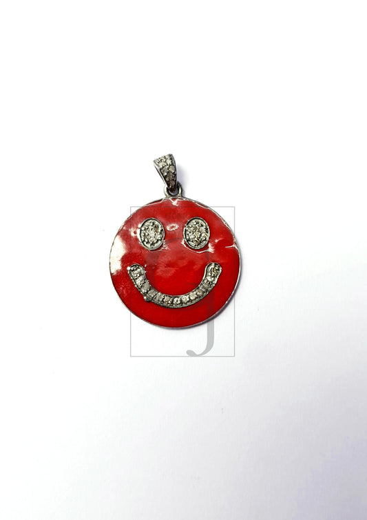 Smiley design Rosecut pave diamond pendant 925 sterling silver handmade finish enamel diamond pendant jewelry bakelite pendent gift jewelry