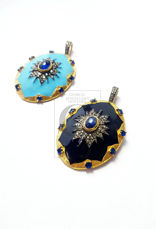 Rosecut pave diamond pendant 925 sterling silver handmade finish enameling diamond jewelry