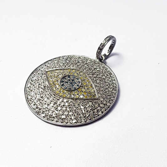 Beautiful Round Shaped Evil Eye Fashionable Design Rocecut Pave Diamond Pendant 925 Sterling Silver Handmade Geometrical Diamond Jewerly