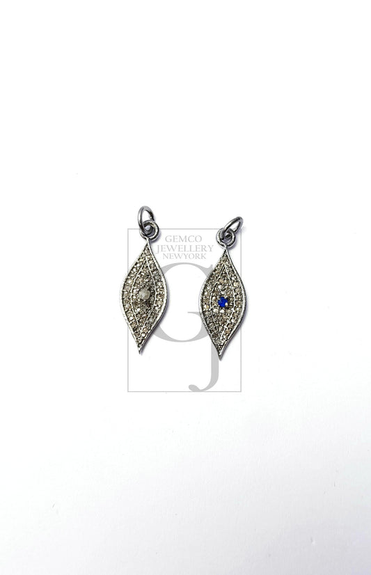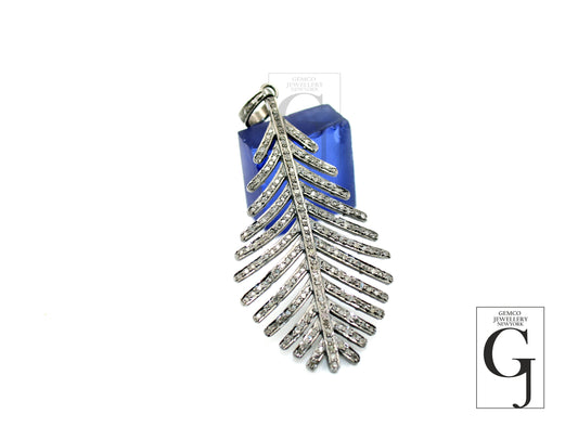 Very Beautiful Peacock Feather Design Pave Diamond Pendant Pave Diamond Rosecut Pendant 925 Sterling Silver Pendant Handmade Diamond Pendant