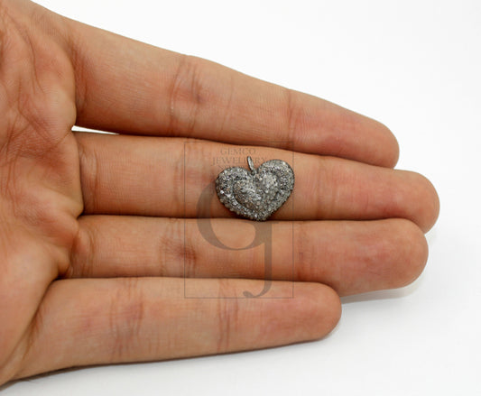 One of a Kind Heart Designer Pendant Rosecut Pave Diamond Pendant 925 Sterling Silver Handmade Finish Diamond Jewelry Necklace Pendant
