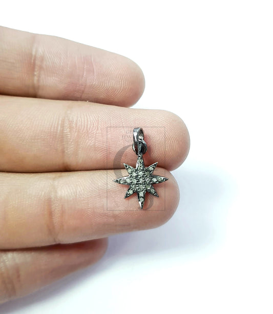 Oxidized finish designer star pendant Rosecut pave diamond star pendant 925 sterling silver handmade finish diamond charms necklace pendant