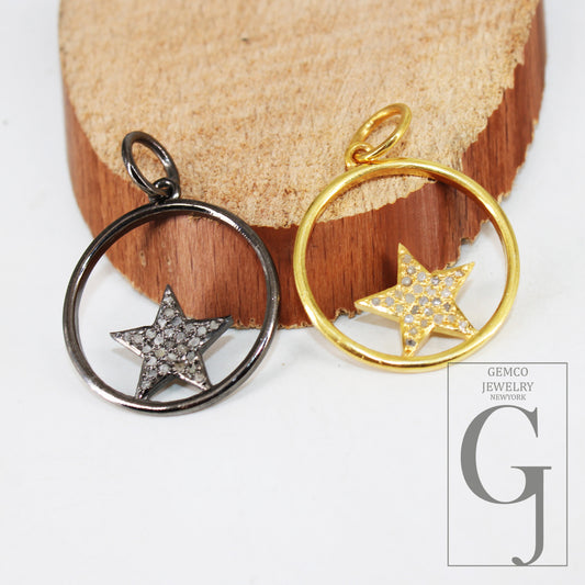 Antique Finish Star Pendant Designer Rosecut Pave Diamond Pendant 925 Sterling Silver Handmade Finish Diamond Charms Necklace Pendant