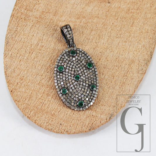 Beautiful Emerald Oval Designer Brilliant Cut Pave Diamond Pendant 925 Sterling Silver Handmade Finish Diamond Charms Necklace Pendant