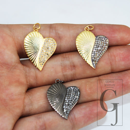 Very beautiful designer heart love pendant Rosecut pave diamond pendant 925 sterling silver handmade finish diamond charms necklace pendant