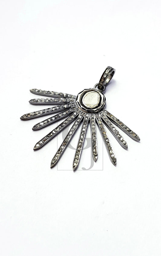 Polki Arrowhead pendant design Rocecut pave diamond pendant 925 sterling silver handmade finish diamond pendant Hollywood style jewelry