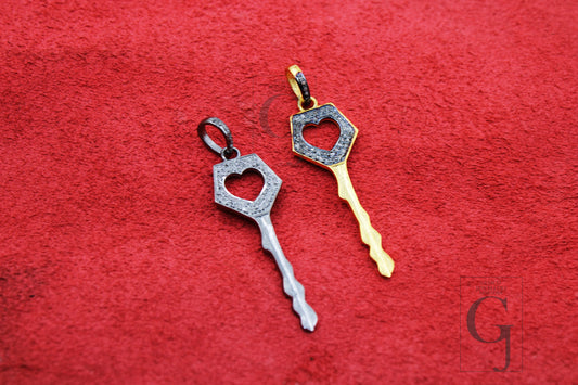 Fashionable love key pendant designer Rosecut pave diamond pendant 925 sterling silver handmade finish diamond charms necklace pendant