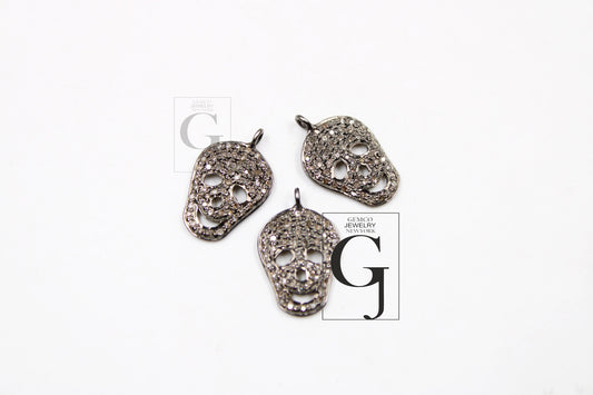 Antique Look Skull Charms Designer Pendant Rosecut Pave Diamond Pendant 925 Sterling Silver Handmade Finish Diamond Charms Necklace Pendant