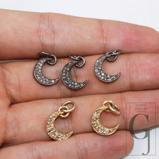 Crescent moon pendant designer Rosecut pave diamond pendant 925 sterling silver handmade finish diamond charms necklace pendant jewelry