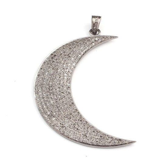 Pave diamond rosecut pendant 925 sterling silver pendant handmade diamond pendant Crescent Moon design diamond Charm Pendant