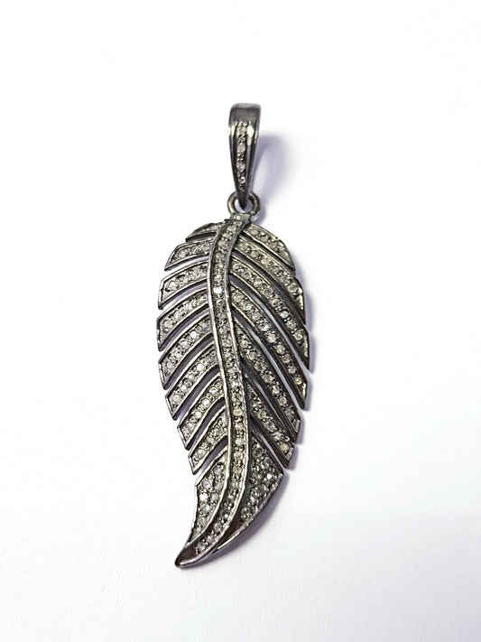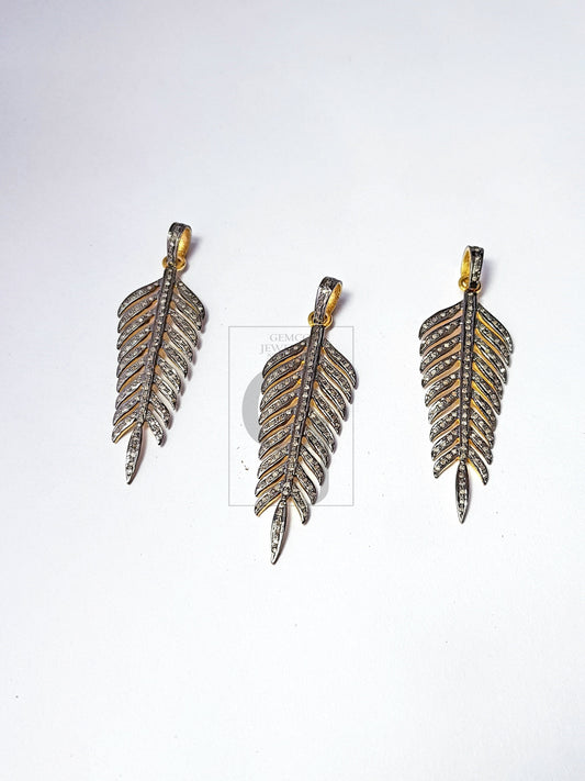 Pave diamond rosecut pendant 925 sterling silver pendant handmade diamond pendant beautiful leaf design diamond pendant charm nature pendent