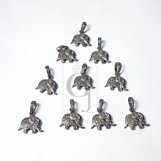 Pave diamond rosecut pendant 925 sterling silver pendant handmade diamond pendant elephant design diamond pendant charm