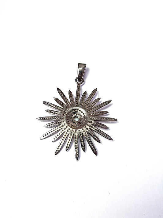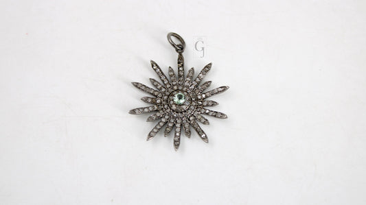 Pave Diamond Rosecut Pendant 925 Sterling Silver Pendant Handmade Diamond Pendant Beautiful Sunburst Pave Diamond Pendant