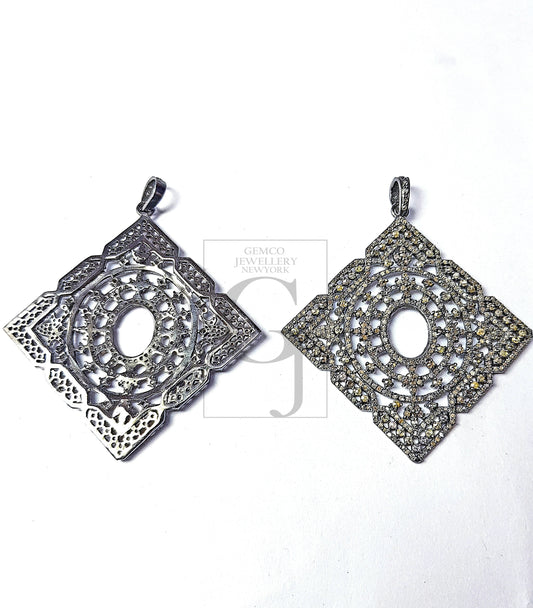 Very Beautiful Square Geometrical Design Pendant Pave Diamond Rosecut Pendant 925 Sterling Silver Pendant Handmade Diamond Pendant Jewelry