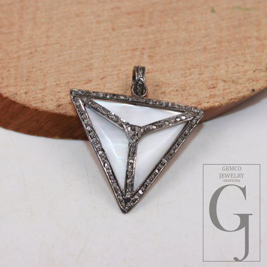 Shell mother of pearl Pave diamond rosecut pendant 925 sterling silver handmade diamond pendant triangle symbol diamond pendant jewelry