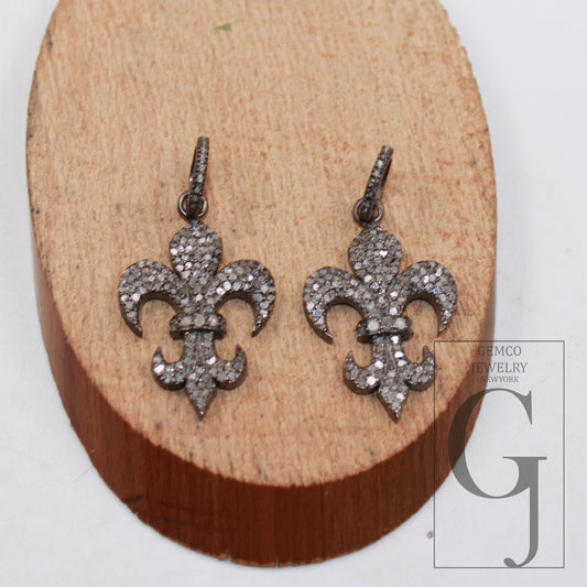 1pc Fleur-De-Lys Pendant Pave Diamond Rosecut Pendant 925 Sterling Silver Pendant Handmade Baguette Diamond Pendant Jewelry France