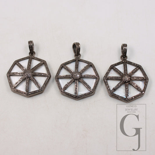 Shell mother of pearl Pave diamond rosecut pendant 925 sterling silver handmade diamond pendant hexagon symbol diamond pendant jewelry