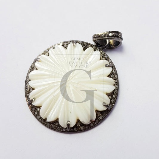 Beautiful Flower Design Rosecut Pave Diamond Pendant 925 Sterling Silver Handmade Finish Mother Of Pearls Diamond Pendant Jewelry