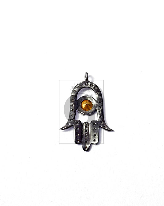 Pave diamond rosecut pendant 925 sterling silver pendant handmade diamond pendant Humsa design pave diamond setting pendant charm