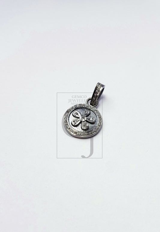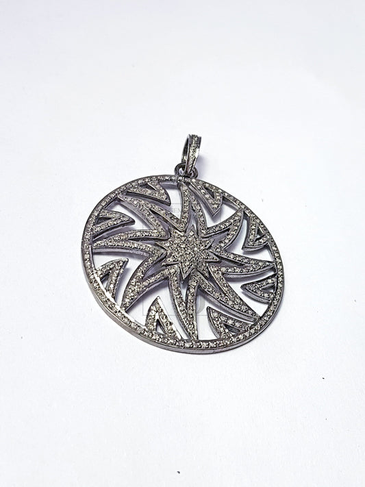 Round sunburst Rocecut pave diamond pendant 925 sterling silver handmade finish diamond jewelry Indian diamond pendant
