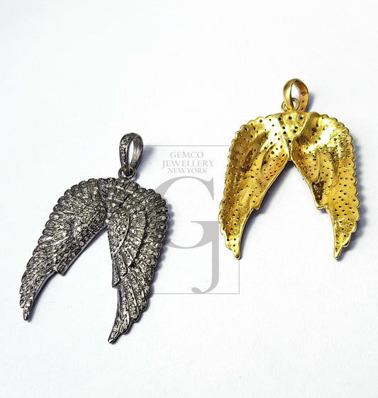 1pc Antique Designer Wings Pendant Pave Diamond Rosecut Pendant 925 Sterling Silver Pendant Handmade Diamond Pendant Diamond Pendant Jewelry