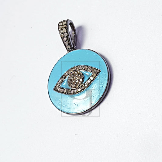 Pave diamond rosecut pendant 925 sterling silver finish handmade diamond pendant evil eye enameling design diamond pendant