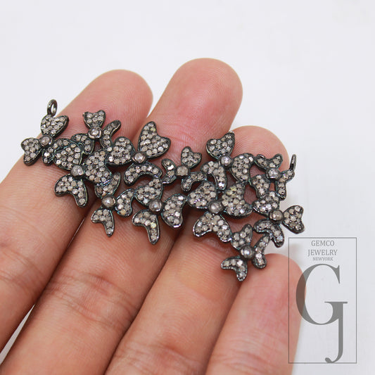 Pave diamond rosecut pendant 925 sterling silver pendant handmade diamond pendant beautiful butterfly pave diamond pendant charm