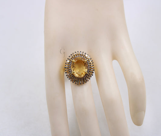18k Gold Finish Baguette Designer Citrine Ring Rosecut Pave Diamond Rings 925 Sterling Silver Handmade Silver Finish Diamond Ring