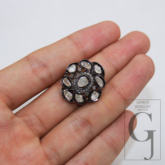 Very beautiful full pave diamond ring Rosecut pave diamond rings 925 sterling silver handmade silver finish diamond rings