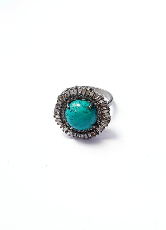 Very Beautiful Designer Rosecut Pave Diamond Rings 925 Sterling Silver Handmade Silver Turquoise Baguettes Finish Diamond Ring