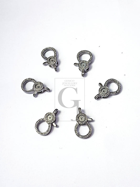 1pc Oxidized Pave Rosecut Diamond 925 Sterling Silver Handmade Pave Diamond Lobster Clasp With Matching Pave Diamond Ring Jewelry Supplies