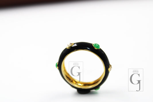 Very beautiful enameling designer emerald Rosecut pave diamond rings 925 sterling silver handmade silver finish diamond emerald ring