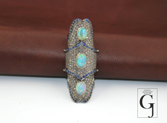 1pc Opal Sapphire Knuckle Ring Designer Ring Rosecut Pave Diamond Rings 925 Sterling Silver Handmade Silver Finish Diamond Ring Jewelry