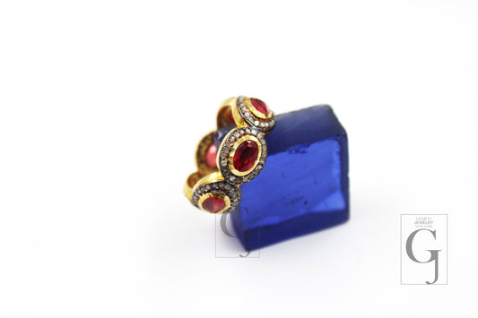 Viva Magenta Color Of 2023 Ruby Designer Ring Band Rosecut Pave Diamond Rings 925 Sterling Silver Handmade Diamond Ring Wedding Band