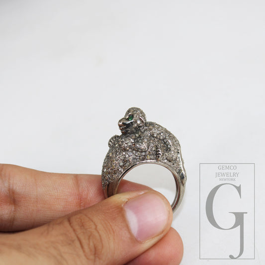 Antique Finish Monkey Ring Designer Rosecut Pave Diamond Rings 925 Sterling Silver Handmade Silver Finish Diamond Ring