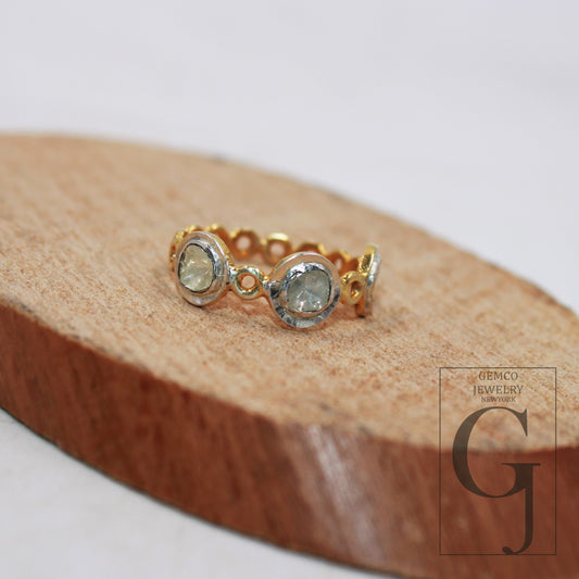 14k Gold Finish Designer Flat Diamond Ring Rosecut Polki Diamond Rings Sterling Silver Handmade Silver Finish Diamond Ring Band Jewelry