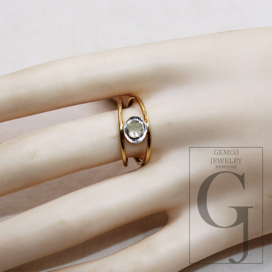 Beautiful 14k Gold Finish Designer Flat Diamond Ring Rosecut Polki Diamond Rings Sterling Silver Handmade Silver Finish Diamond Ring Jewelry