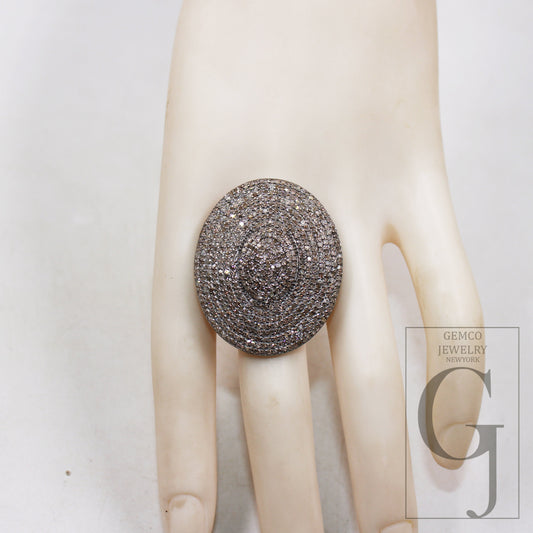 Beautiful Brilliant Full Cut Diamond Stag Ring Designer Rosecut Pave Diamond Rings 925 Sterling Silver Handmade Silver Finish Diamond Ring