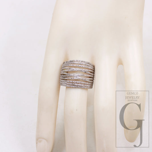ZIG ZAG RING Designer Brilliant Cut Pave Diamond Rings 925 Sterling Silver Handmade Silver Finish Full Cut Diamond Wedding ,Engagement Ring