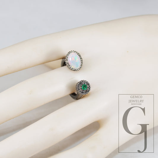 Antique Finish Opal Ring Emerald Ring Designer Rosecut Pave Rosecut Diamond Rings 925 Sterling Silver Handmade Silver Finish Diamond Ring