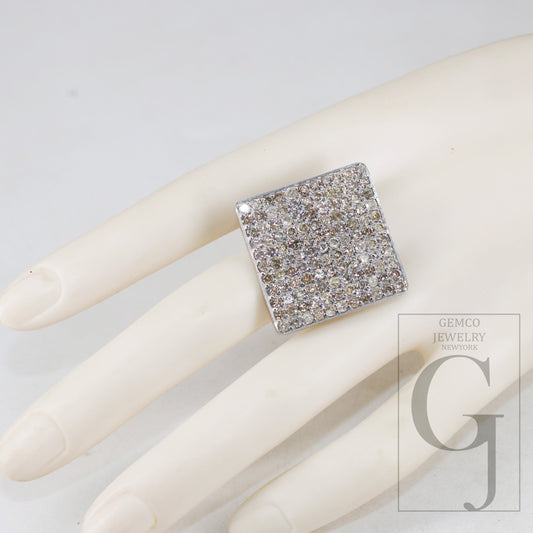 Beautiful brilliant full cut diamond ring designer Rosecut pave diamond rings 925 sterling silver handmade silver finish diamond jewelry