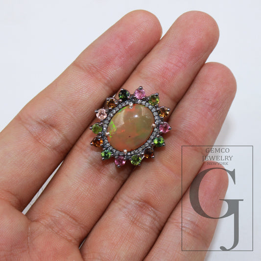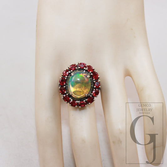 Beautiful Red Fire Opal Ring Multi Tourmaline Ring Design Rosecut Pave Diamond Ring 925 Sterling Silver Handmade Finish Diamond Ring Jewelry