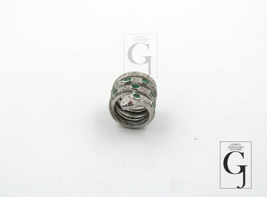 Very beautiful snake ring designer emerald ring Rosecut pave diamond rings 925 sterling silver handmade silver finish diamond ring